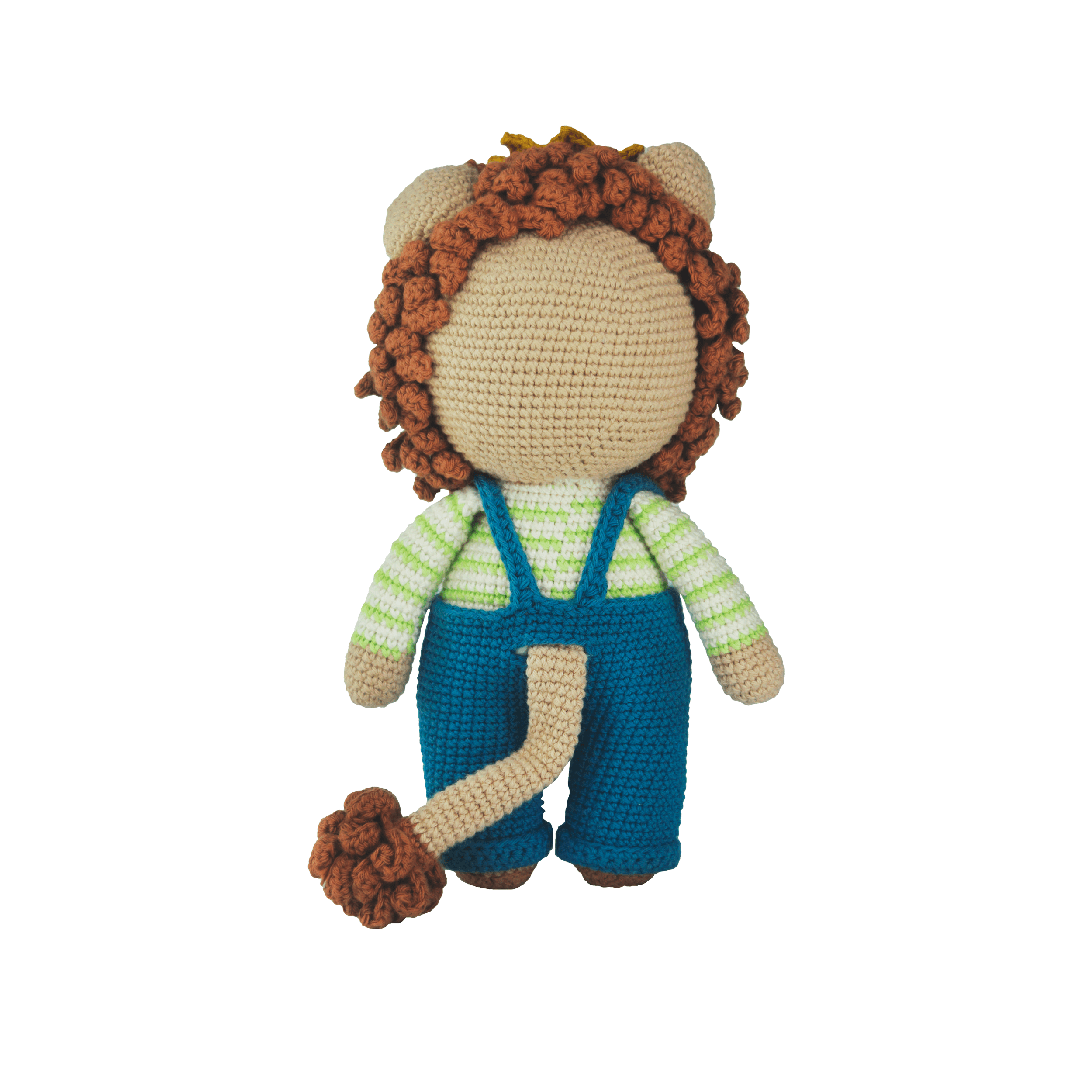 Este adorable león tejido a mano es el compañero perfecto para los más valientes y tiernos. Con su corona dorada, melena esponjosa y su ropa detallada, es un peluche lleno de personalidad y encanto.