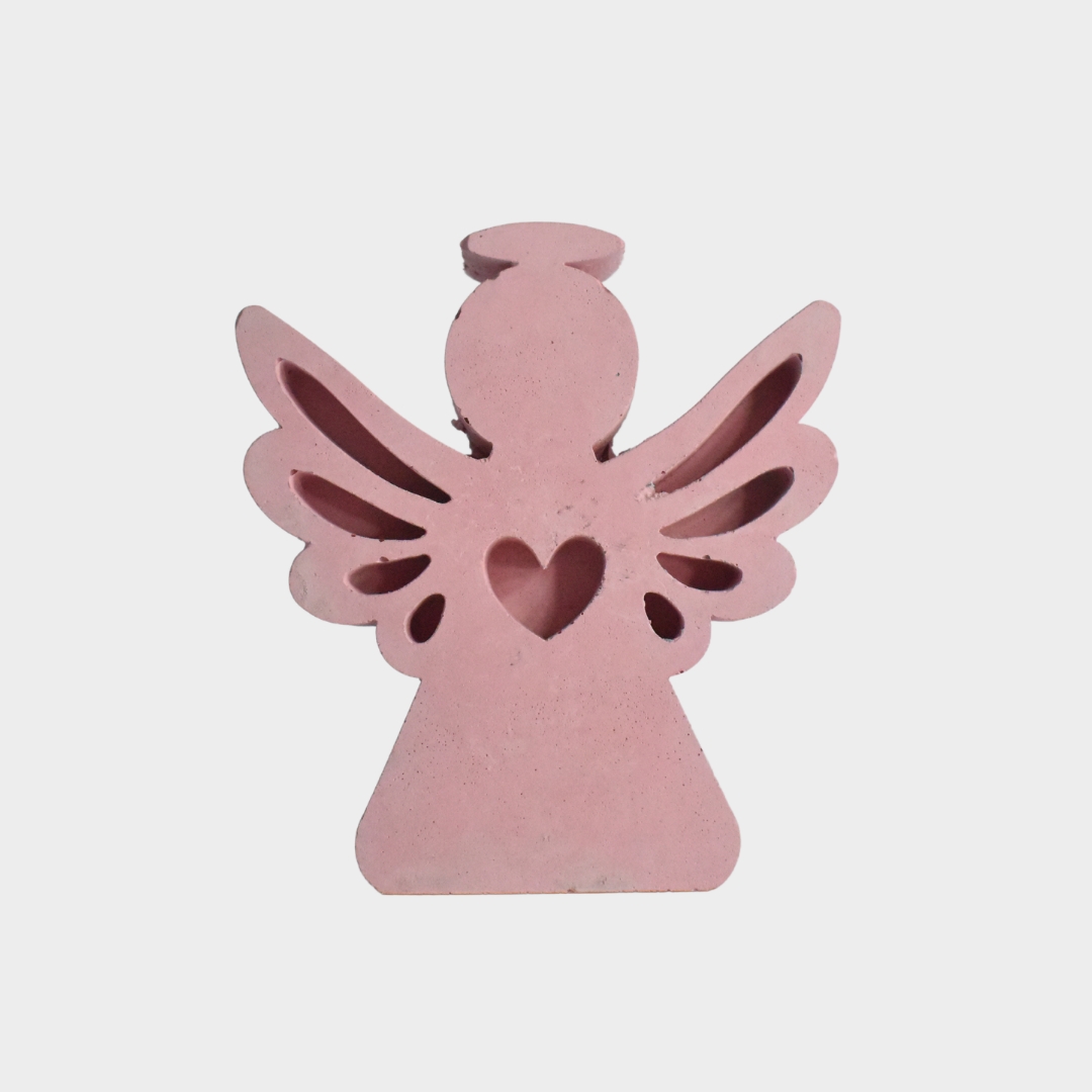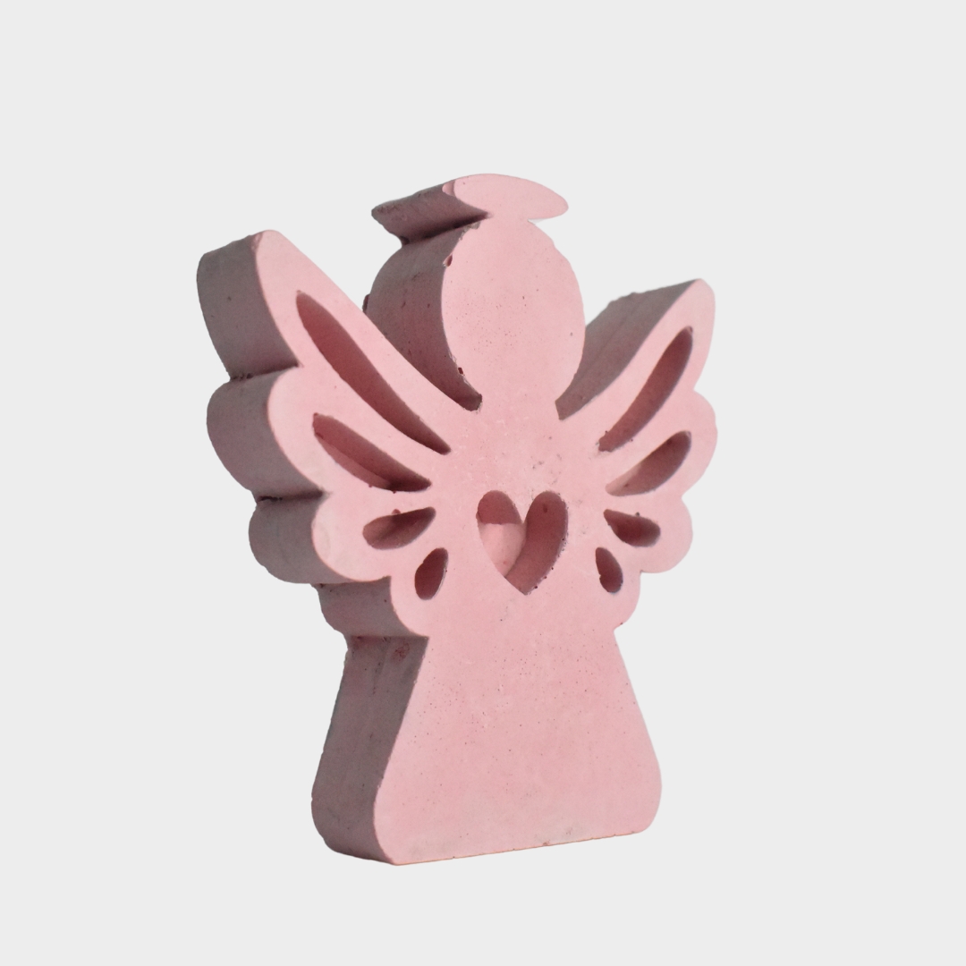 Este ángel de concreto en color rosa es una pieza decorativa encantadora que transmite paz y serenidad. Con detalles en forma de corazón, es perfecto para decorar cualquier espacio con un toque delicado y espiritual. Ideal como regalo o para añadir un toque especial a tu hogar.