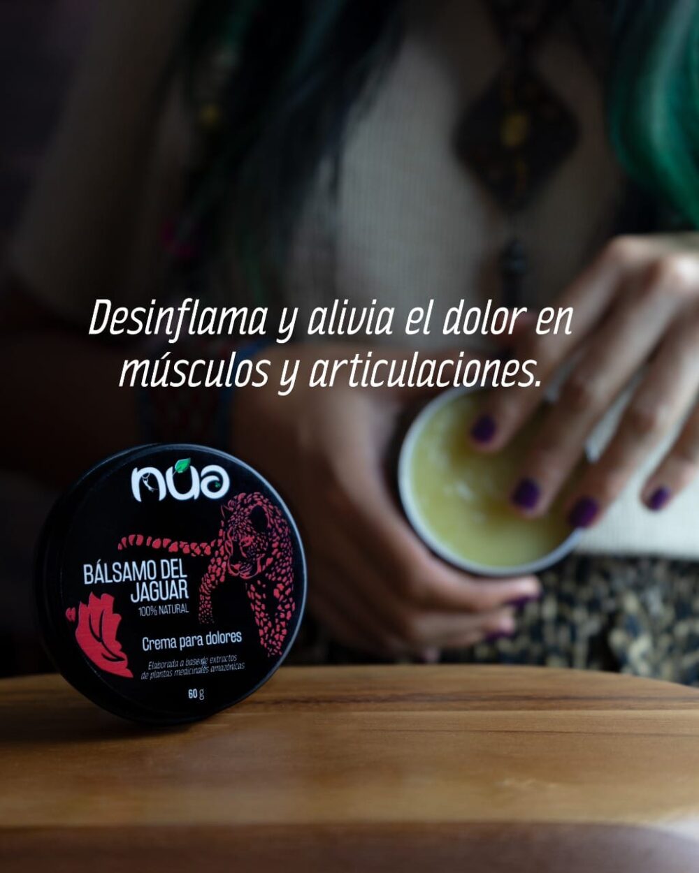 Bálsamo elaborado 100% en ingredientes amazónicos. Penetra profundamente la piel, para aliviar la tensión muscular y el dolor de las articulaciones, sirve para desinflamar, calmar y aliviar el dolor en casos de torceduras, esguinces, reumatismo, artritis, lumbagos, estrés, etc. Ingredientes: Aceite de coco amazónico prensado en frio. Tintura de plantas medicinales amazónicas: ajo ,sacha, mucura, bobinsana. Aceite de cáñamo, alcanfor, mentol, cera de abeja, manteca de cacao, aceites esenciales de ravintsara, canela y eucalipto. Contiene 60g