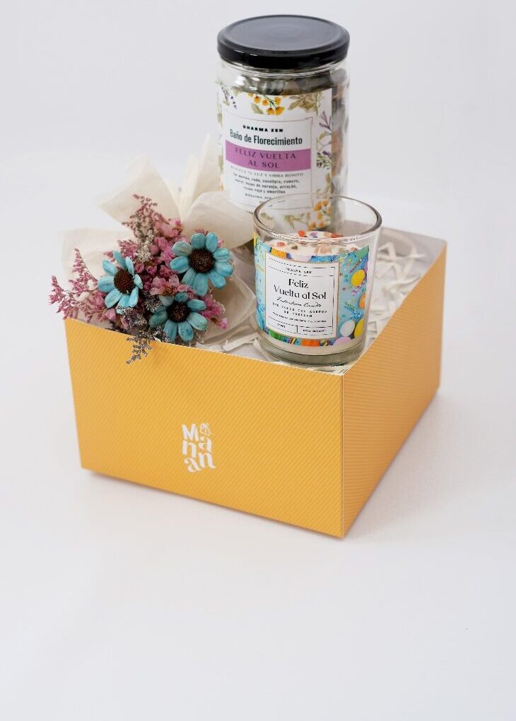 • Vela aromática "Feliz Vuelta al Sol" – Con fragancias que inspiran calma y bienestar. 🕯️