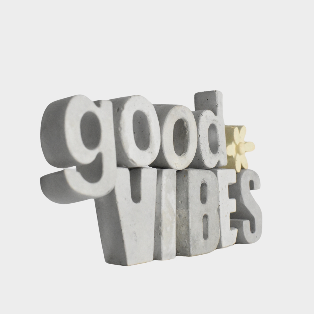 Este diseño de concreto con la frase "Good Vibes" es perfecto para llenar de energía positiva cualquier espacio. Con un estilo moderno y un pequeño detalle de flor, es ideal para decorar tu hogar u oficina con un mensaje optimista y lleno de buenas vibras. Aporta frescura y alegría a la decoración.
