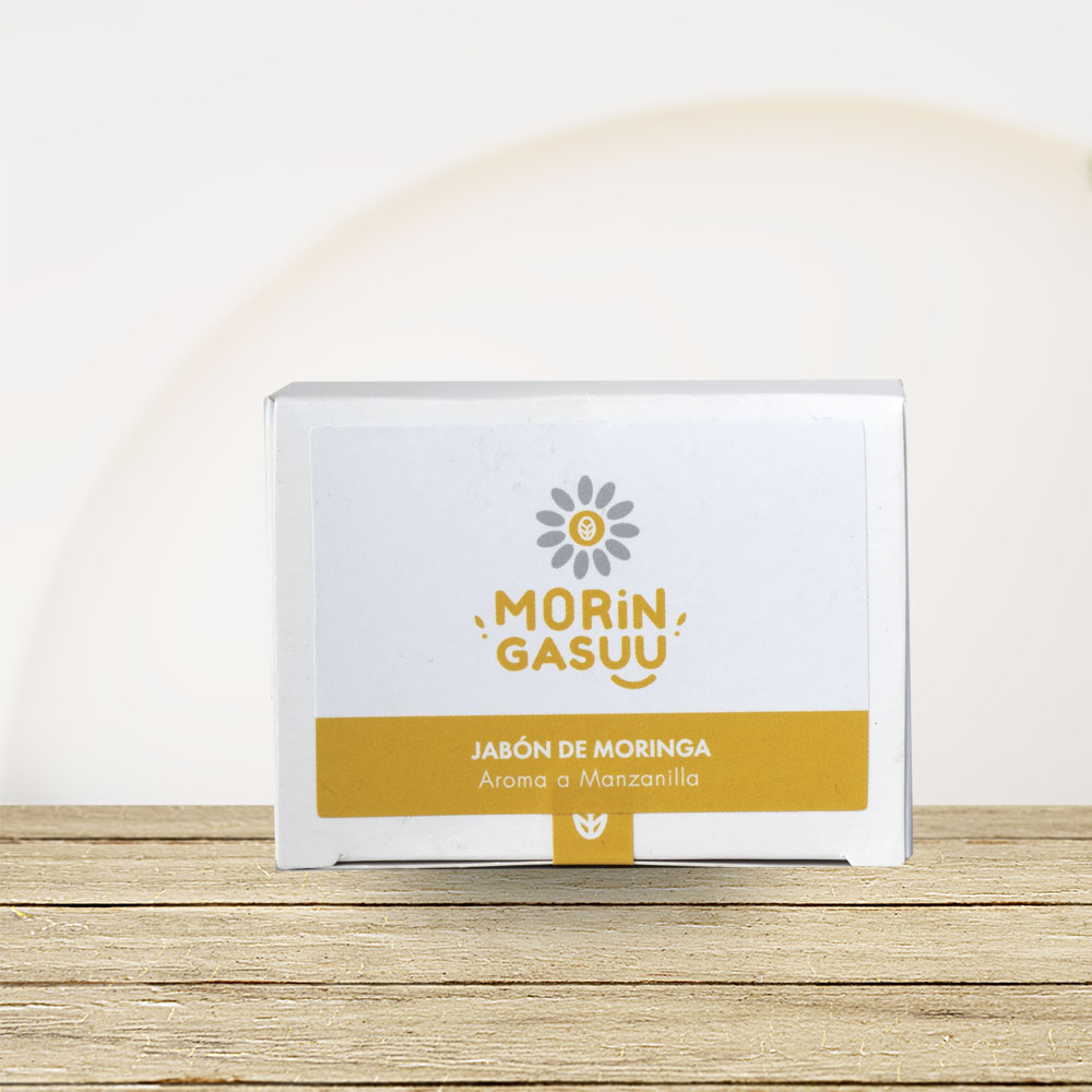 Jabón de Moringa con aroma a manzanilla Hidrata y regenera la piel, apto para bebes desde recién nacidos, ayuda a tratar dermatitis, rosácea y piel atópica. Contiene aceite de semilla de moringa, hojas de manzanilla pulverizada, aceite esencial de manzanilla.