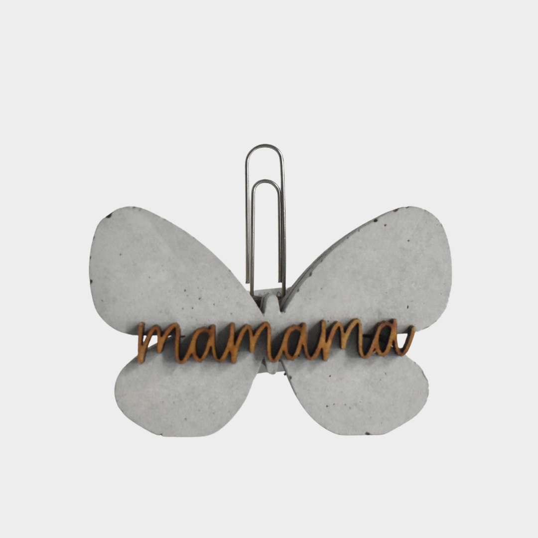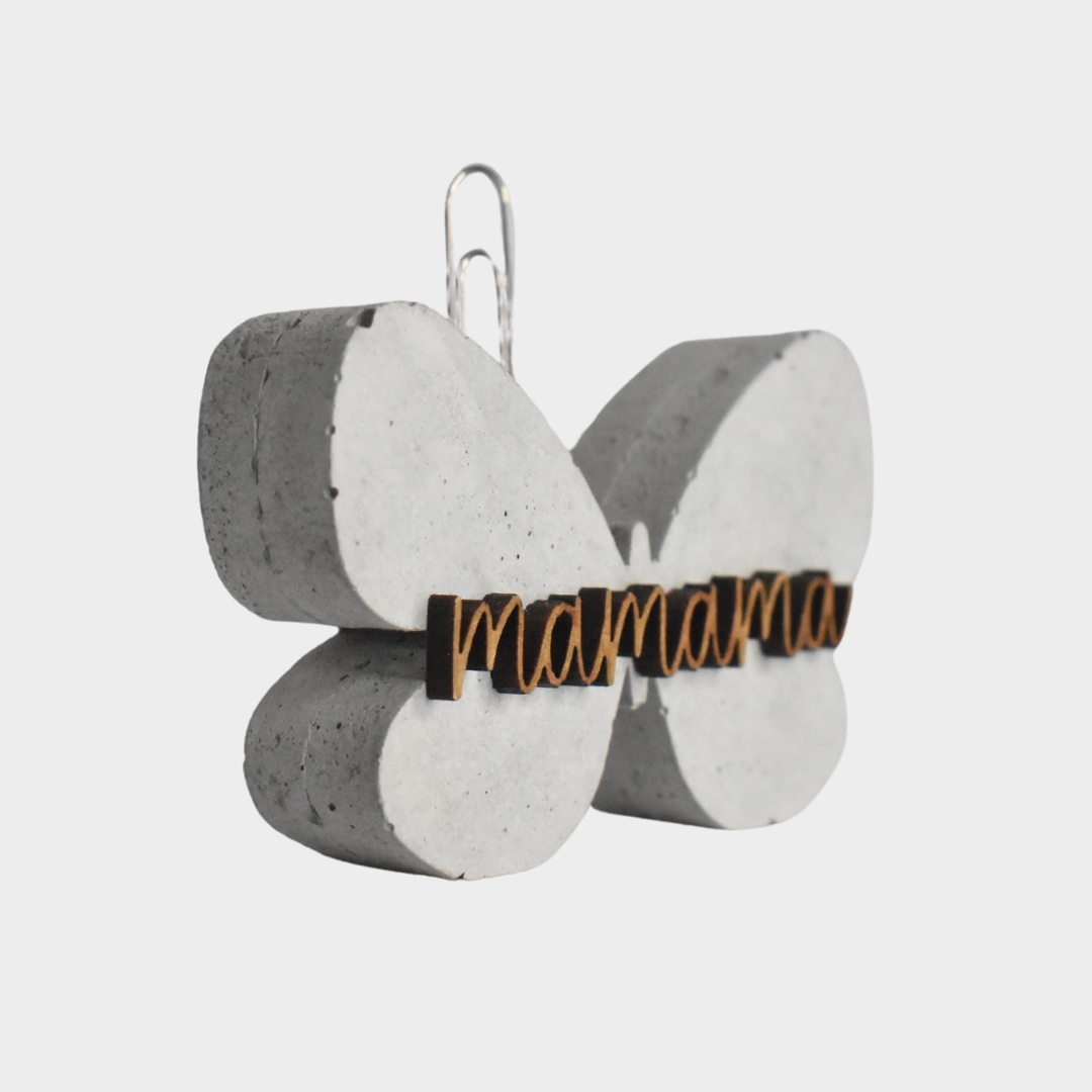 Este diseño de concreto en forma de mariposa con la palabra "Mamama" es un hermoso tributo a esa figura especial en nuestras vidas. Ideal para regalar o decorar con un toque de amor y ternura, su estilo delicado y significativo lo convierte en una pieza única y entrañable para cualquier espacio.