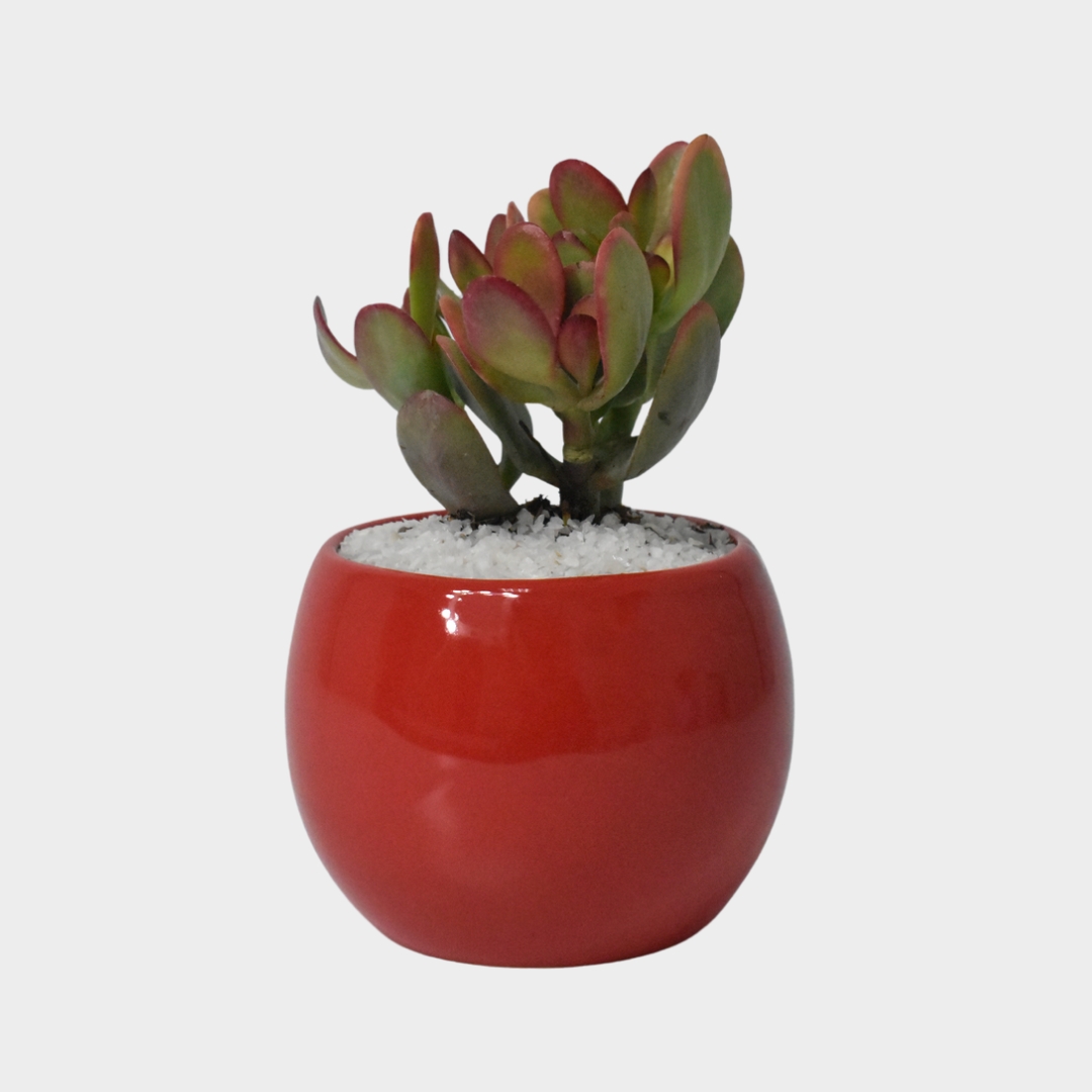 Dale vida a tus espacios con esta vibrante mini suculenta en una maceta roja de acabado brillante. Perfecta para añadir un toque de color a cualquier ambiente, es ideal para decoraciones modernas y minimalistas. Su bajo mantenimiento la convierte en una opción fantástica para cualquier rincón de tu hogar u oficina.