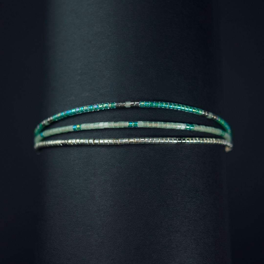 Un diseño fino y elegante con cuentas turquesa y detalles grises, ideal para un look sofisticado y moderno. Perfecta para usar sola o combinar con otros accesorios.