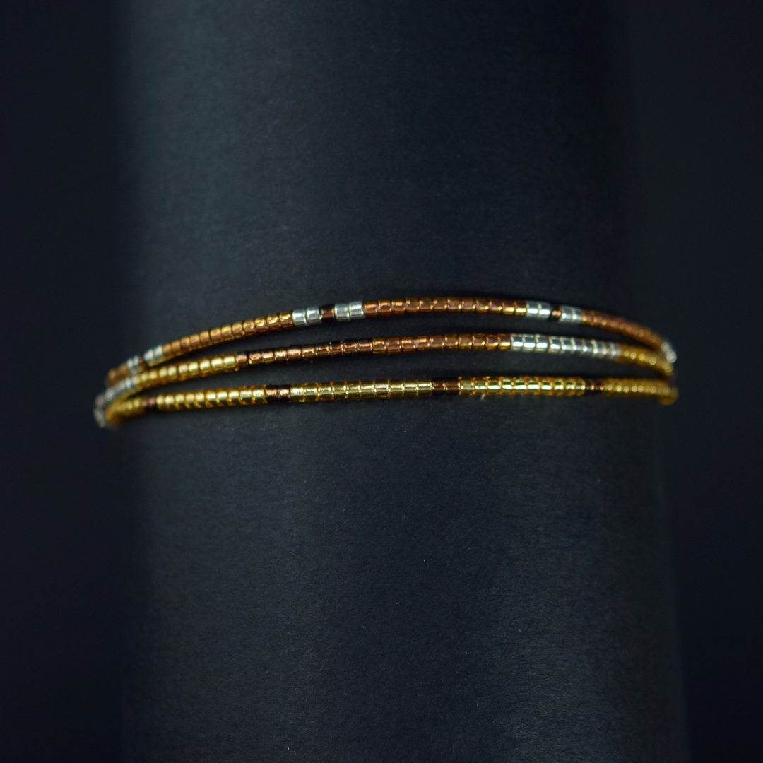 Un diseño fino y elegante con cuentas cobrizas y detalles grises, ideal para un look sofisticado y moderno. Perfecta para usar sola o combinar con otros accesorios.