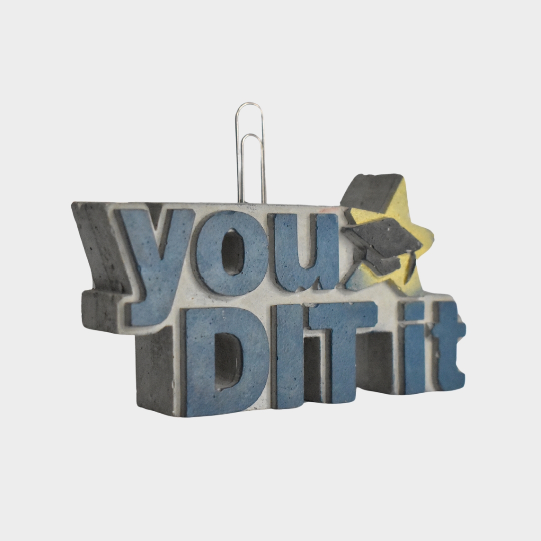Este diseño de concreto con la frase "You Did It" es el detalle perfecto para celebrar logros importantes, como graduaciones o metas alcanzadas. Con un diseño colorido que incluye una estrella y un birrete, es ideal para motivar y recordar esos momentos especiales de éxito.