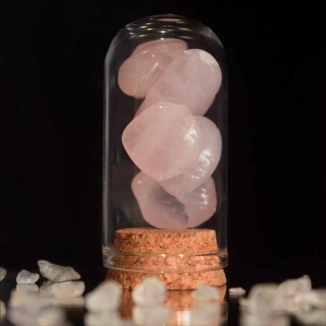 Con cuarzo rosa, esta botella simboliza el amor y la paz. Ideal para atraer pasión y ternura, fomenta la armonía y el bienestar emocional, equilibrando el corazón y las energías