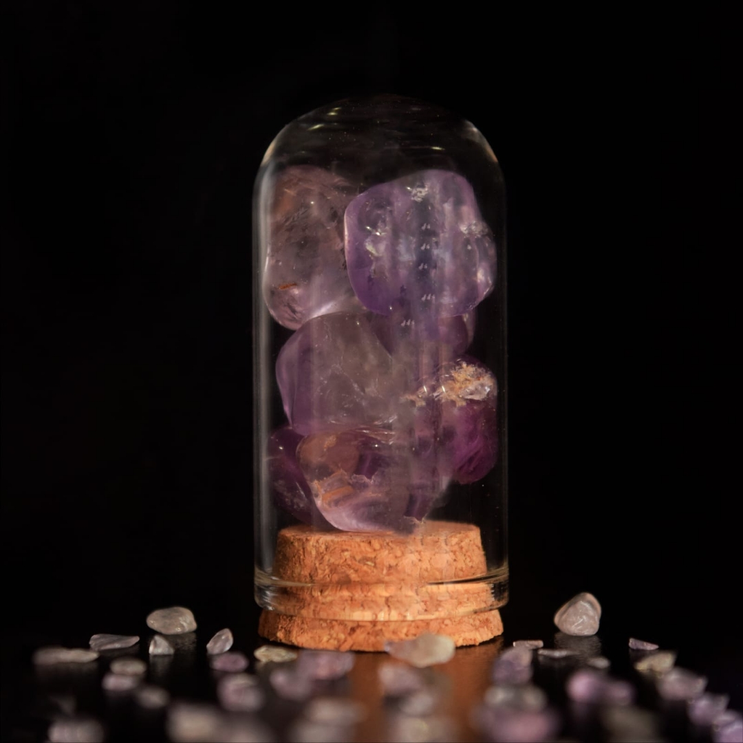 El cuarzo amatista evoca tranquilidad y serenidad. Ideal para ambientes donde se necesita paz interior, ayudando a calmar la mente y promover la meditación.
