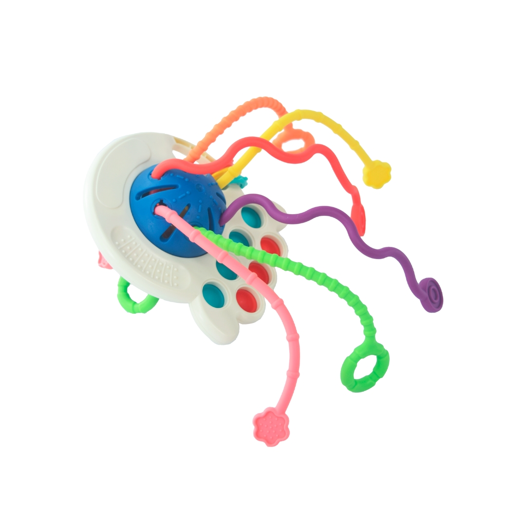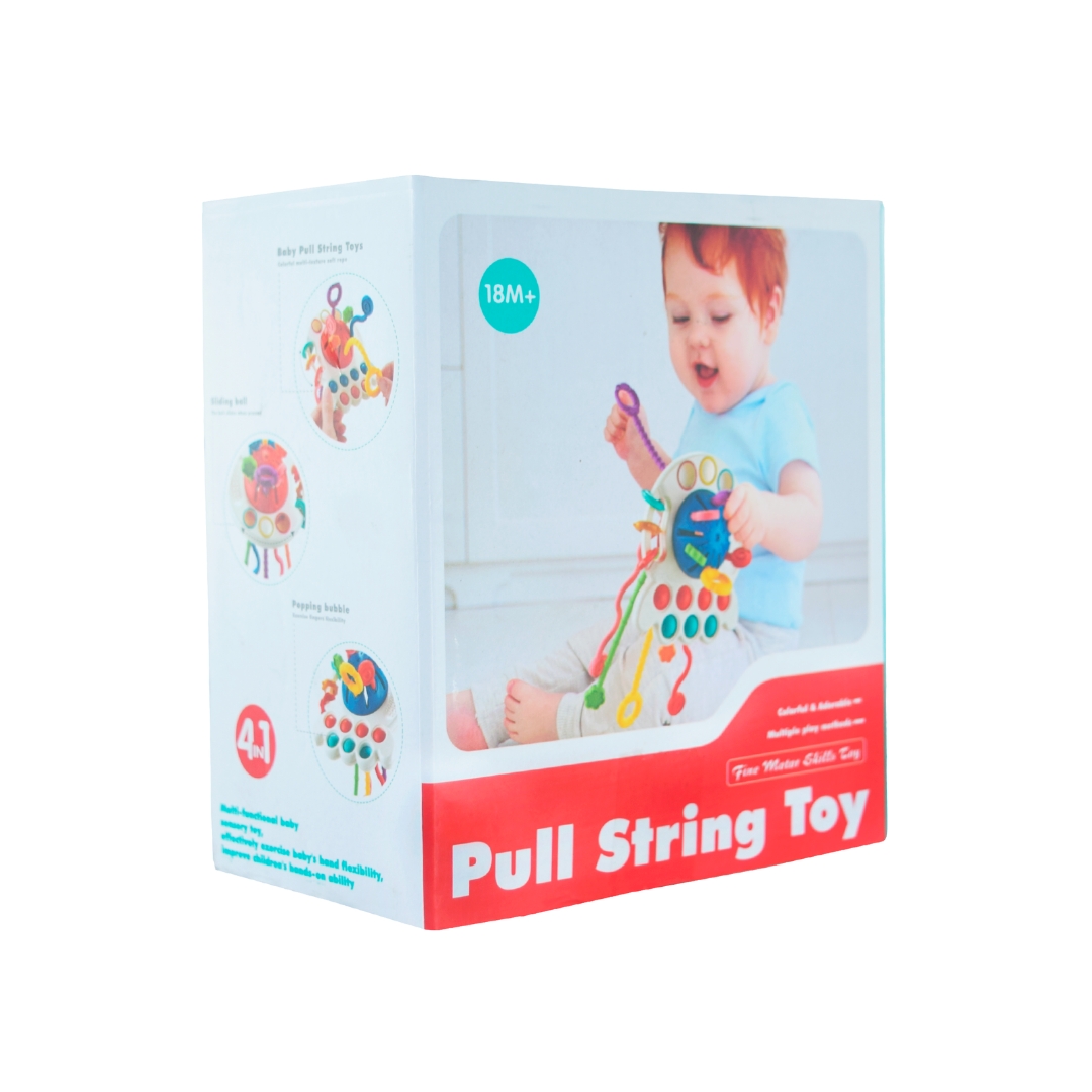 Este juguete multifuncional para niños mayores de 18 meses está diseñado para mejorar la flexibilidad de las manos y la coordinación motora fina. Incluye cuerdas para tirar, bolas giratorias y burbujas para presionar, ofreciendo múltiples formas de interacción y estimulación sensorial.