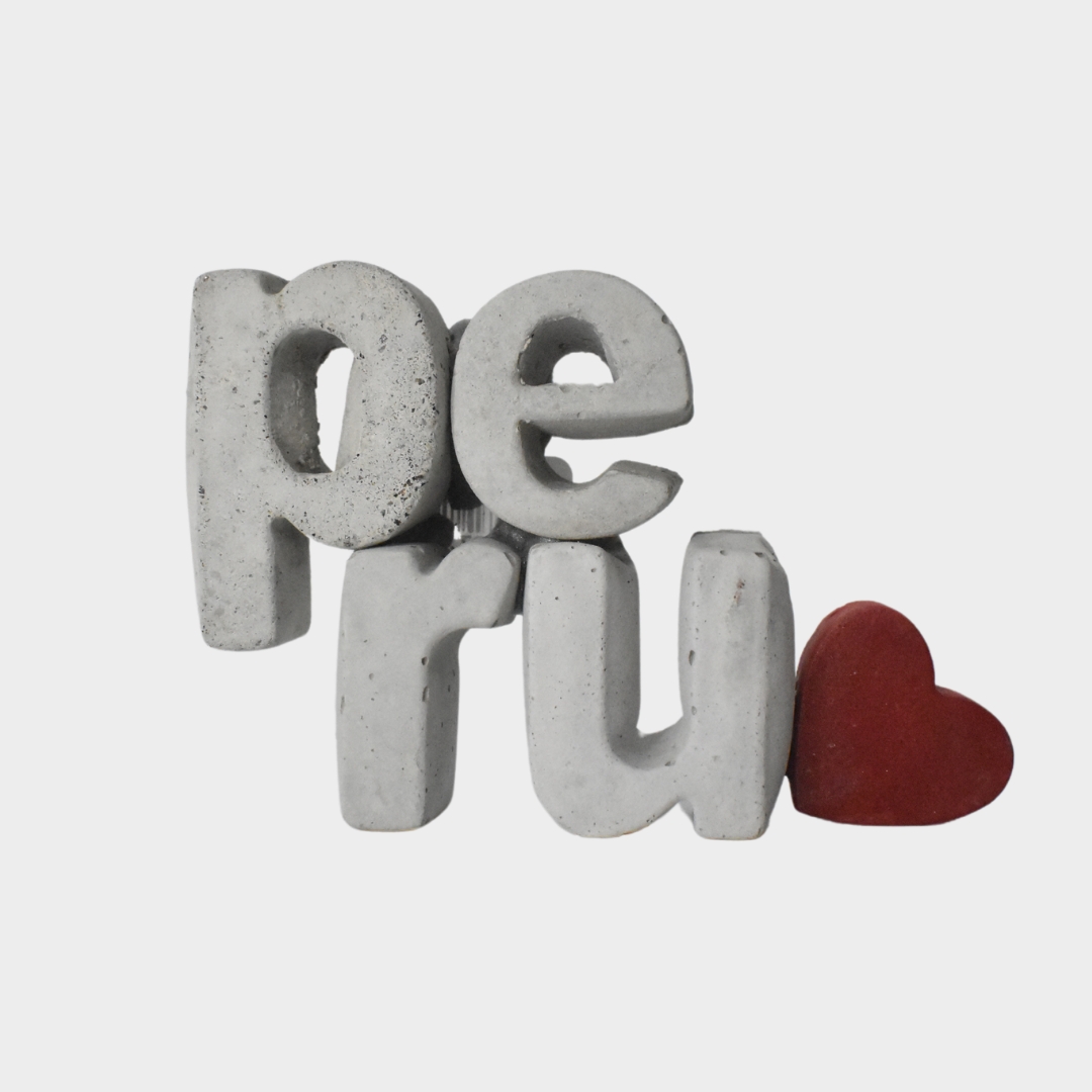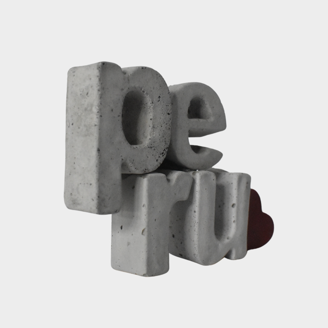 Este elegante objeto de decoración en concreto presenta la palabra "Perú", esculpida con un diseño moderno que captura la esencia de la riqueza cultural y natural de nuestro país. Cada letra refleja la diversidad de paisajes, tradiciones y la calidez de su gente, convirtiendo esta pieza en un auténtico homenaje a nuestra identidad.