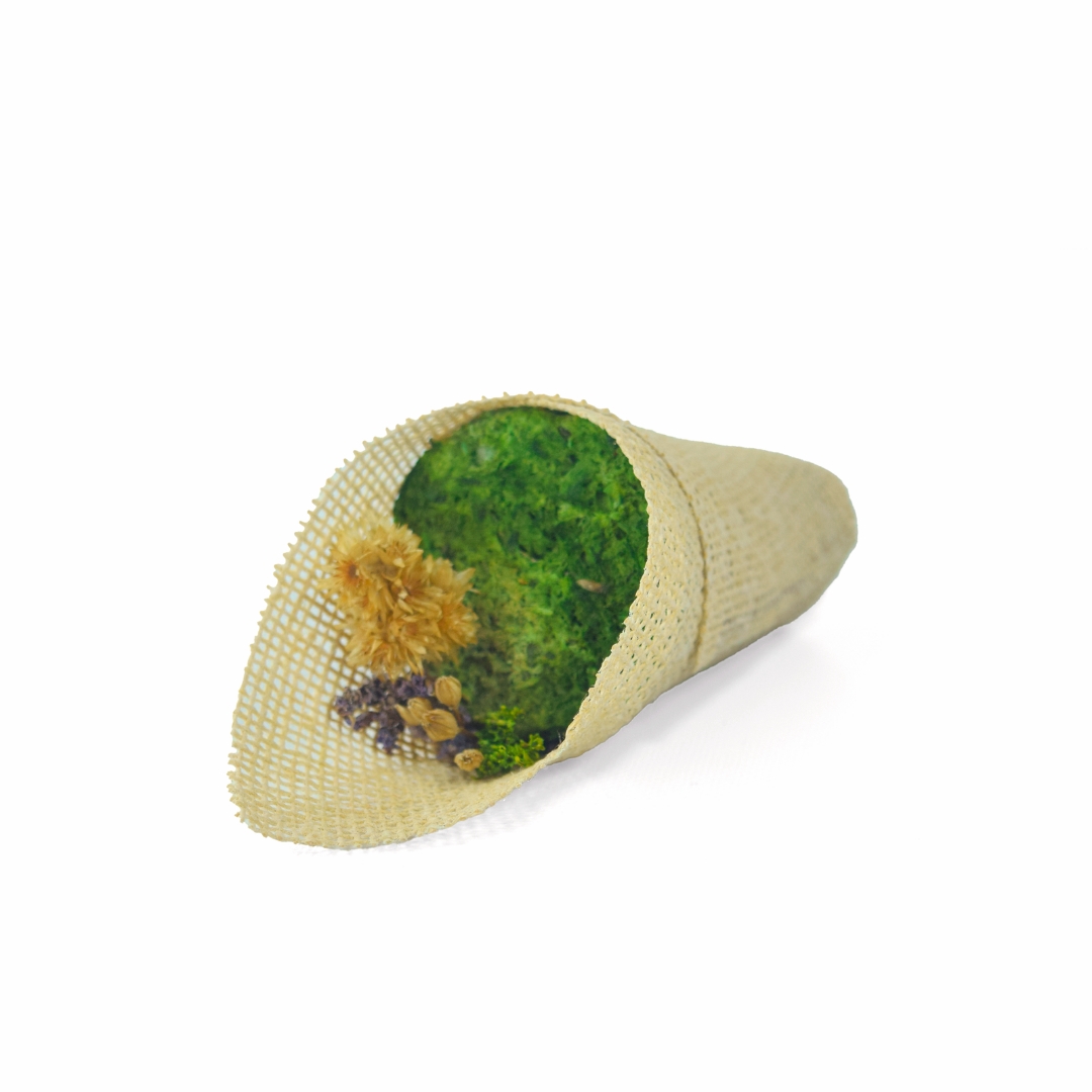 Este cono decorativo está hecho de yute natural y contiene palo santo, incienso, copaiba, mirra y flores secas, con ello limpias profundamente las energías negativas fomentando un aura positiva.